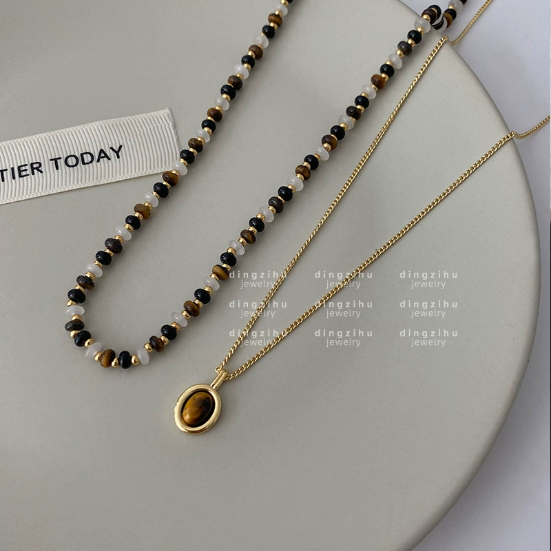 Popular natural tiger eye stone for women’s stacked sweater chain