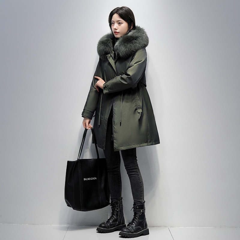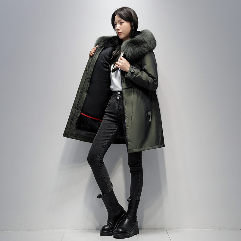 | nameOriginal | Popular parka women's 2023 Winter new style liner detachable real fur Rex Rabbit Fur Coat mid-length hooded |