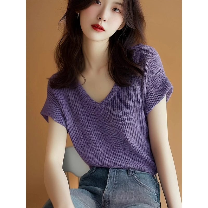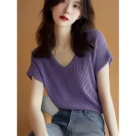 | nameOriginal | Popular spring and summer purple T-shirt, simple V-neck knitted short sleeves |