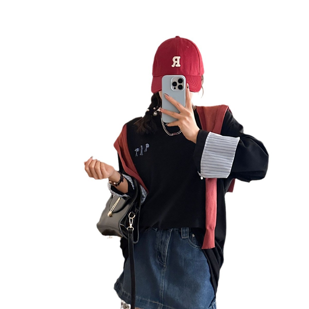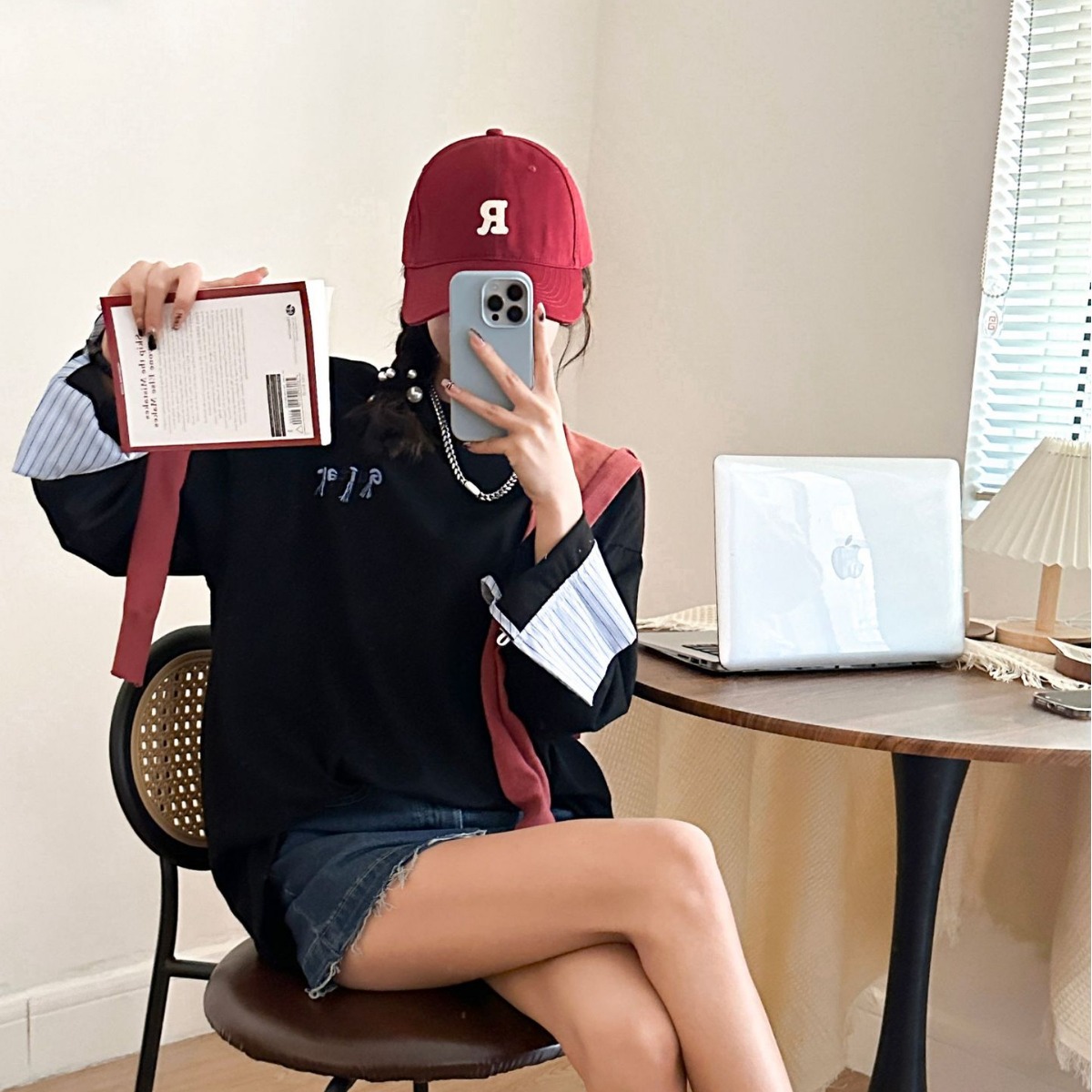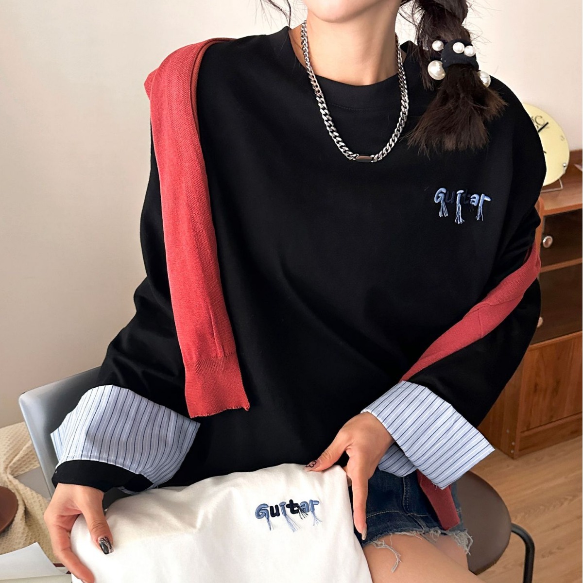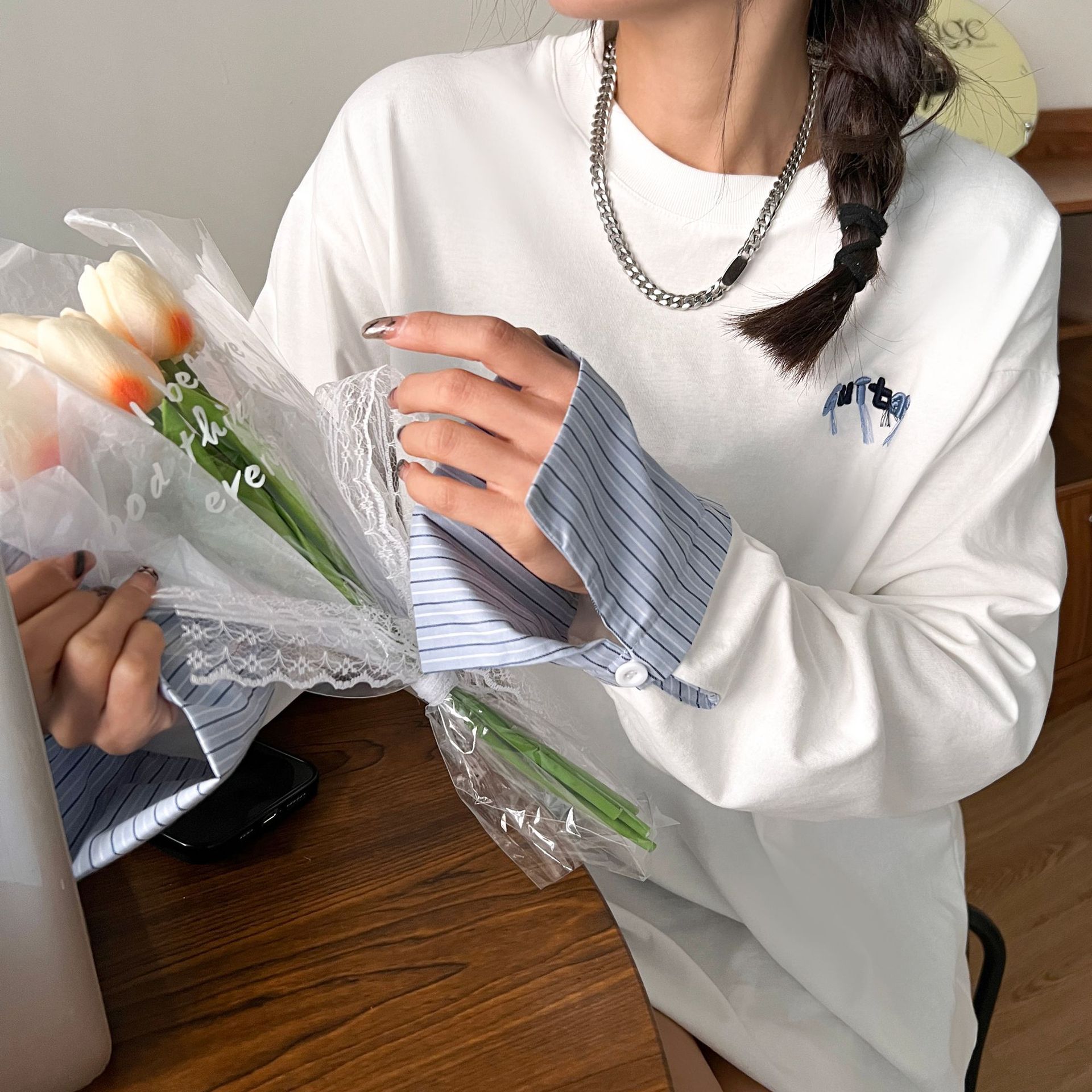 | nameOriginal | Popular stitching striped cuff cotton bottoming Women's Mid-length loose slimming 2024 spring and autumn stacked bottoming shirt |