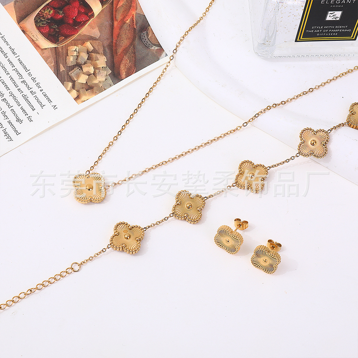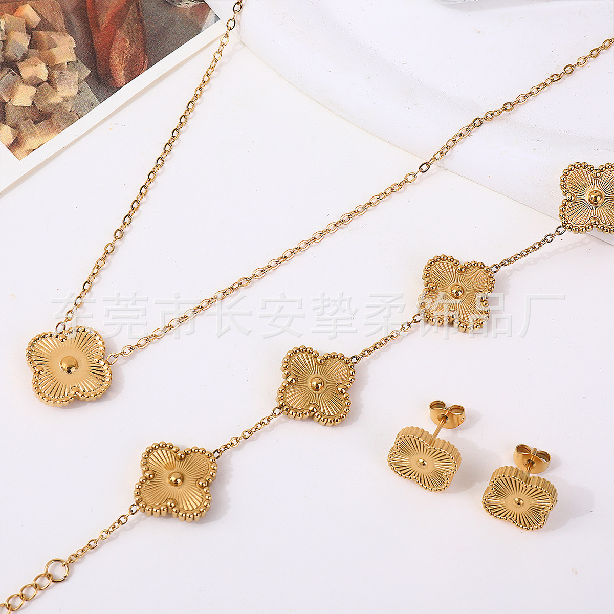 | nameOriginal | Popular titanium steel clover necklace female clavicle chain bracelet ear studs do not fade first decorations high-grade do not fade |