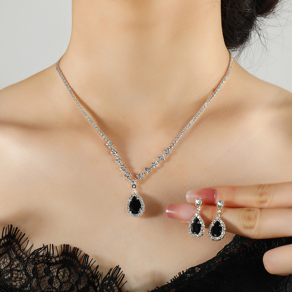Popular two-piece necklace earrings drop-shaped zircon drop pendant simple women's suit elegant clavicle chain