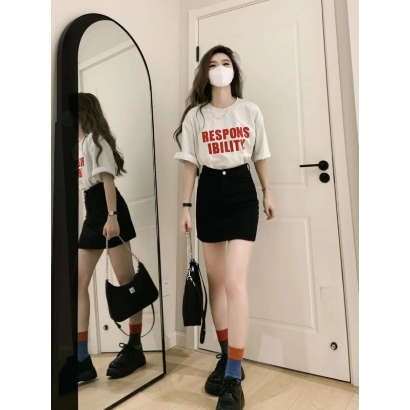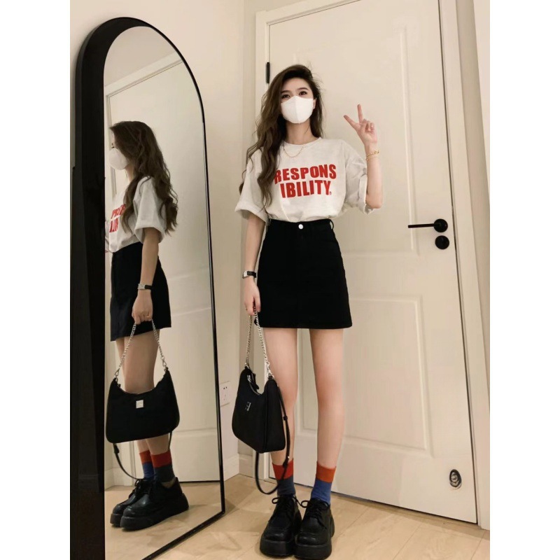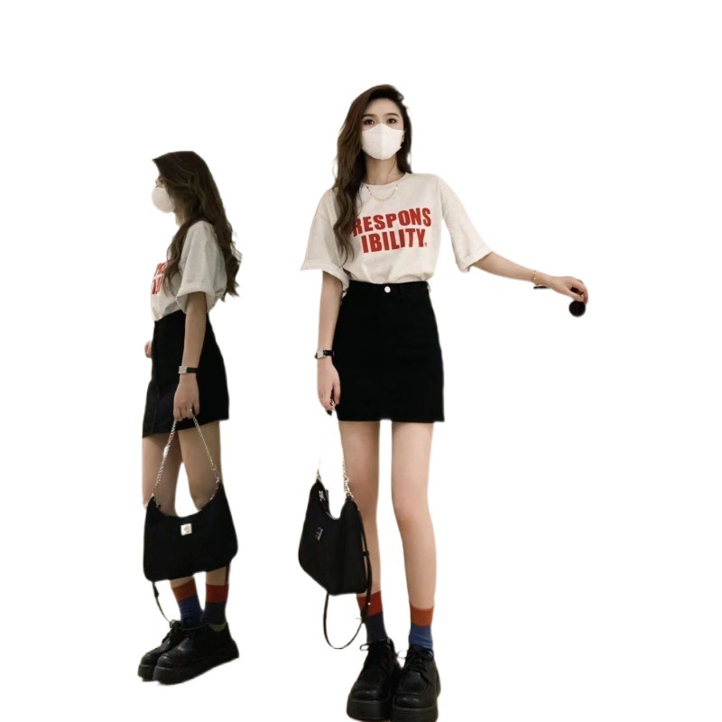 | nameOriginal | Popular wear a set of summer new ins jacket short sleeve T-shirt black Denim skirt fashion trend |