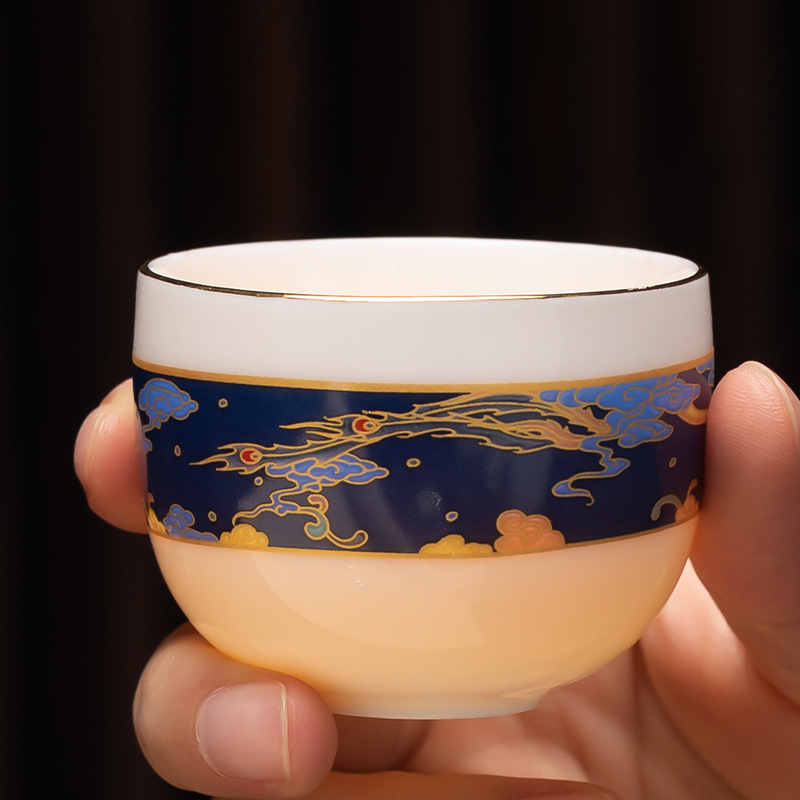 Porcelain brand tea sheep fat jade porcelain tea cup transparent household office ceramic kung fu tea set personal tea cup Master Cup