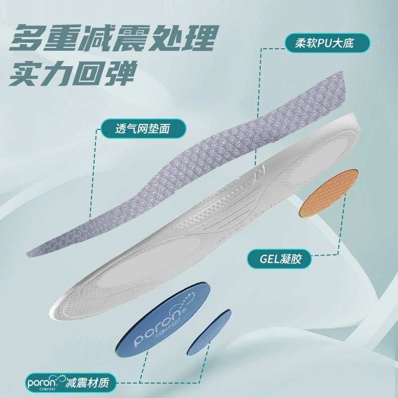 | nameOriginal | poron sports GEL super soft gasket shock-absorbing insoles for men and women in spring and autumn breathable sweat-absorbent and deodorant basketball silicone air cushion |