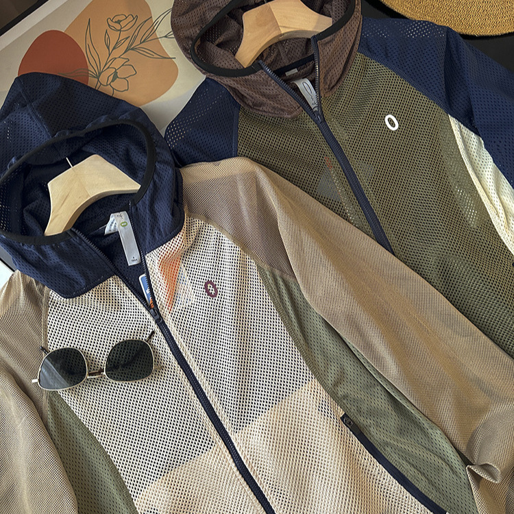 Port 1199! Couple’s Technology Mesh Breathable Stitching Color Contrast Outdoor Sunscreen Skin Jacket Xia Xin Women