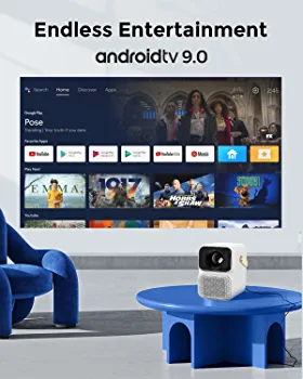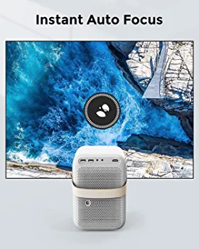 Portable 1080P projector with 5G Wifi and 4k video capabilities. Ideal for indoor movie nights, office presentations, and school use.