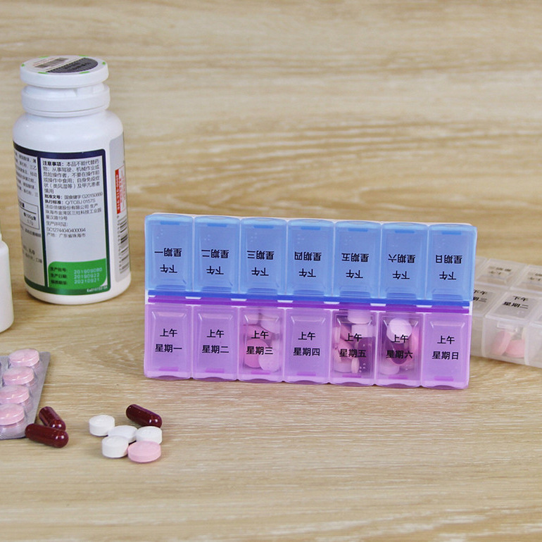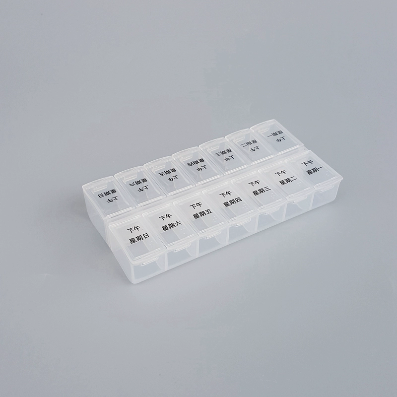 | nameOriginal | Portable 14-cell transparent pill box with Braille for one week, 2-cell morning and evening pill packaging storage box |