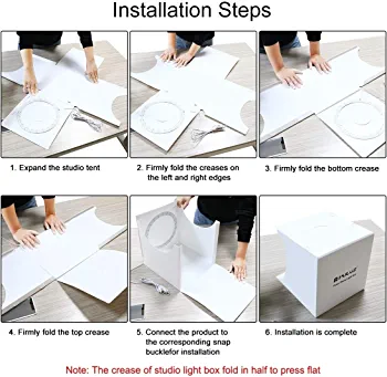 | descriptionOriginal | Do you want take every photo in a perfectly lit studio? PULUZ Upgrade Photography Studio Tent is detachable, foldable and portable, it has changed the concept of traditional studio and created a new possibility of photography. Multi-Angle Shooting Openings in the top and front allow almost unlimited camera angles, meet different shooting demands. White light / Soft light / Warm light 3 kind color-light dimming, can adjust by randomly according to your needs. Model 1 : White light Brightness Dimmer Brightness dimmer allows you to control the light effect better, ranging from 10%-100%. |
