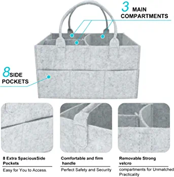 Crafted from high-quality felt fabric, this caddy is both lightweight and durable, making it a safe choice for use around babies. It’s also incredibly versatile, making it a great gift for new parents or a useful addition to your nursing station or car organizer.