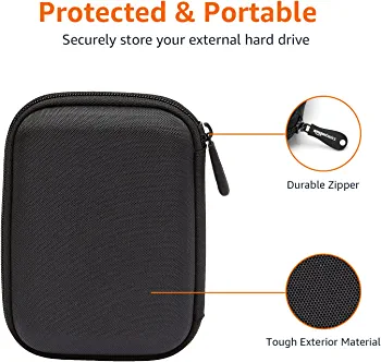 | descriptionOriginal | AmazonBasics External Hard Drive Case The AmazonBasics Hard Carrying Case for portable hard drives is a durable protector for your portable Seagate or other hard drive. Designed especially to fit the Seagate External Hard Drive (fits drives up to 5 x 3.2 x 0.8-inches), this soft-lined case features an inner mesh compartment for a USB cable and accessories. Details This durable and stylish carrying case for hard drives offers a tough exterior that protects your portable hard drive from bumps and jostles. Additionally, its soft liner keeps your hard drive's case free of scratches. Convenient Inner Mesh Pocket The case features an inner mesh pocket for a connecting USB cable or accessories. The case design makes it easy to insert and remove your portable hard drive, which is ideal for when you're on the go–and the inner mesh pocket lets you conveniently store the cables needed to connect your hard drive when you need immediate access to your data. |