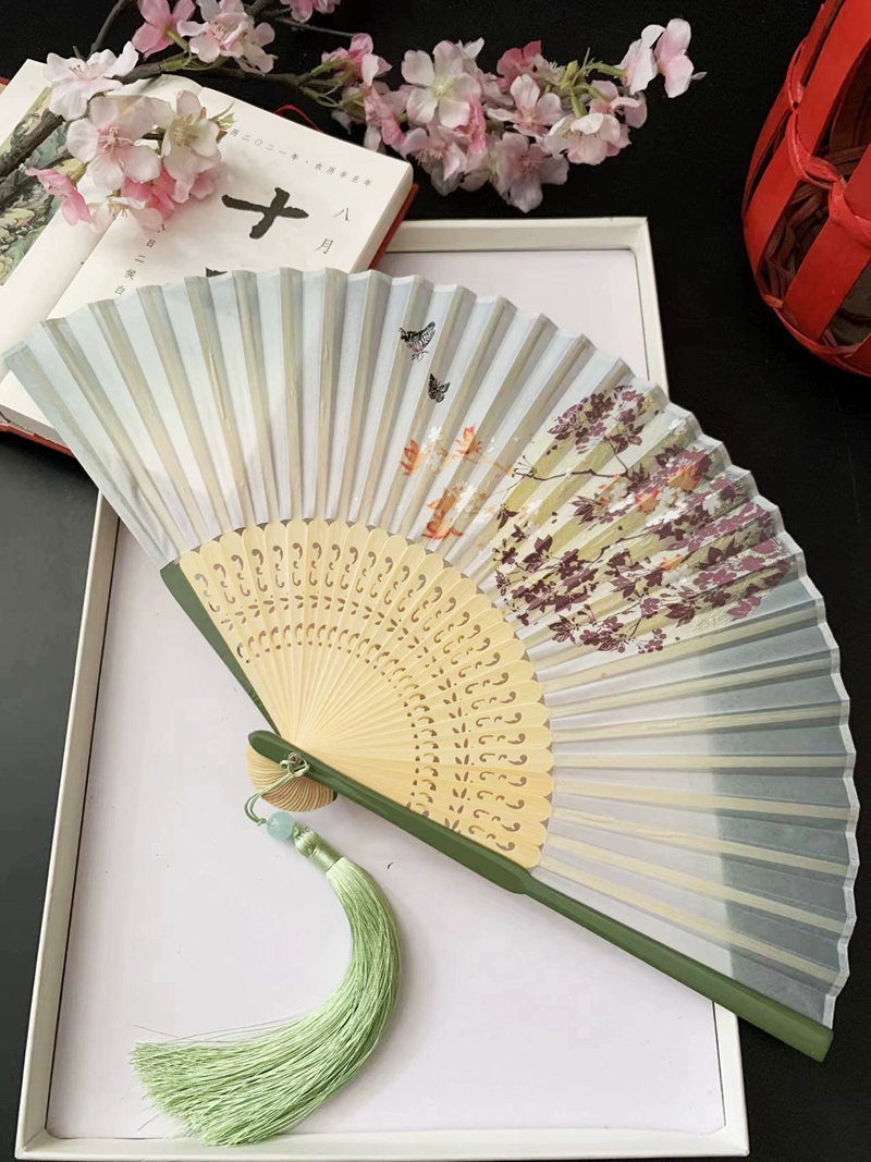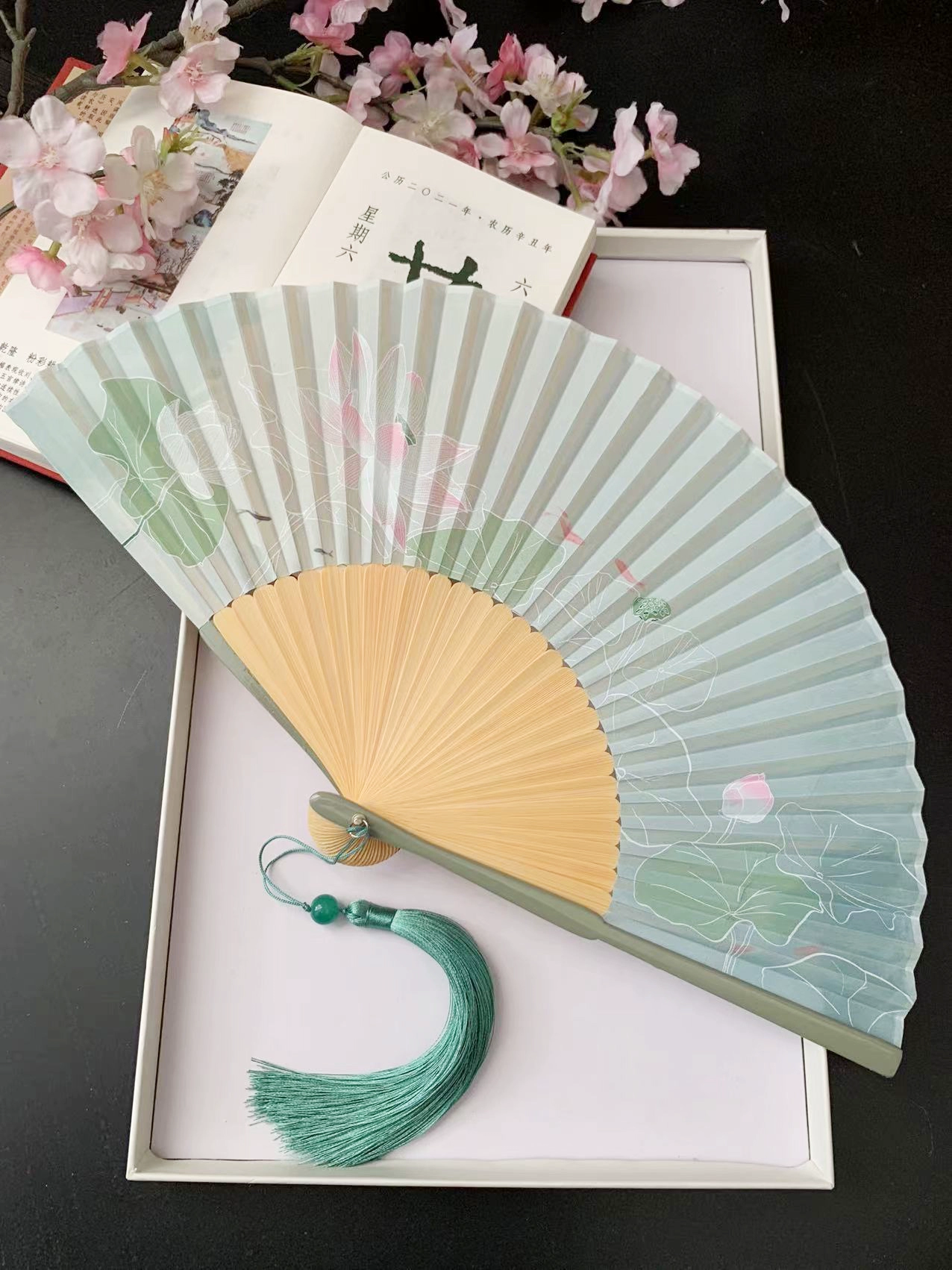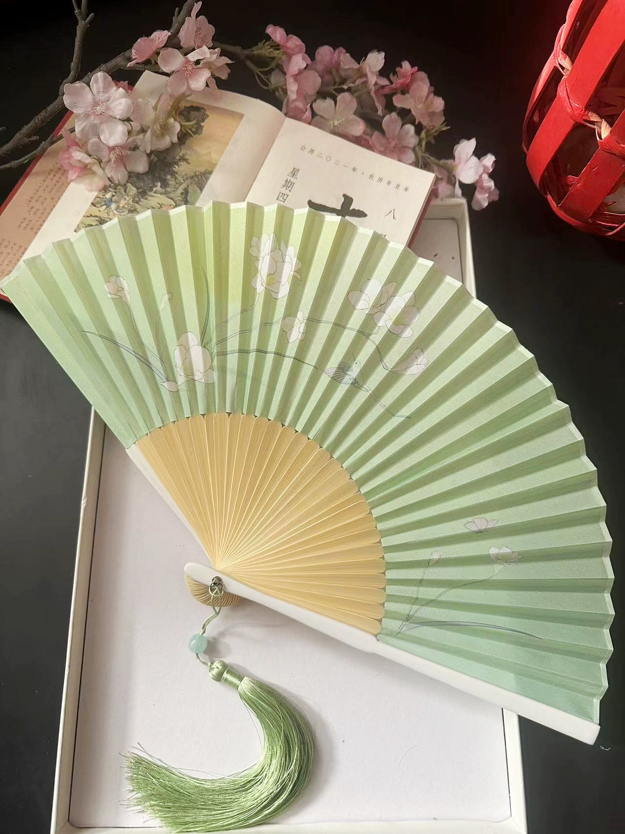 | nameOriginal | Portable cheongsam folding ancient small lotus green fan |