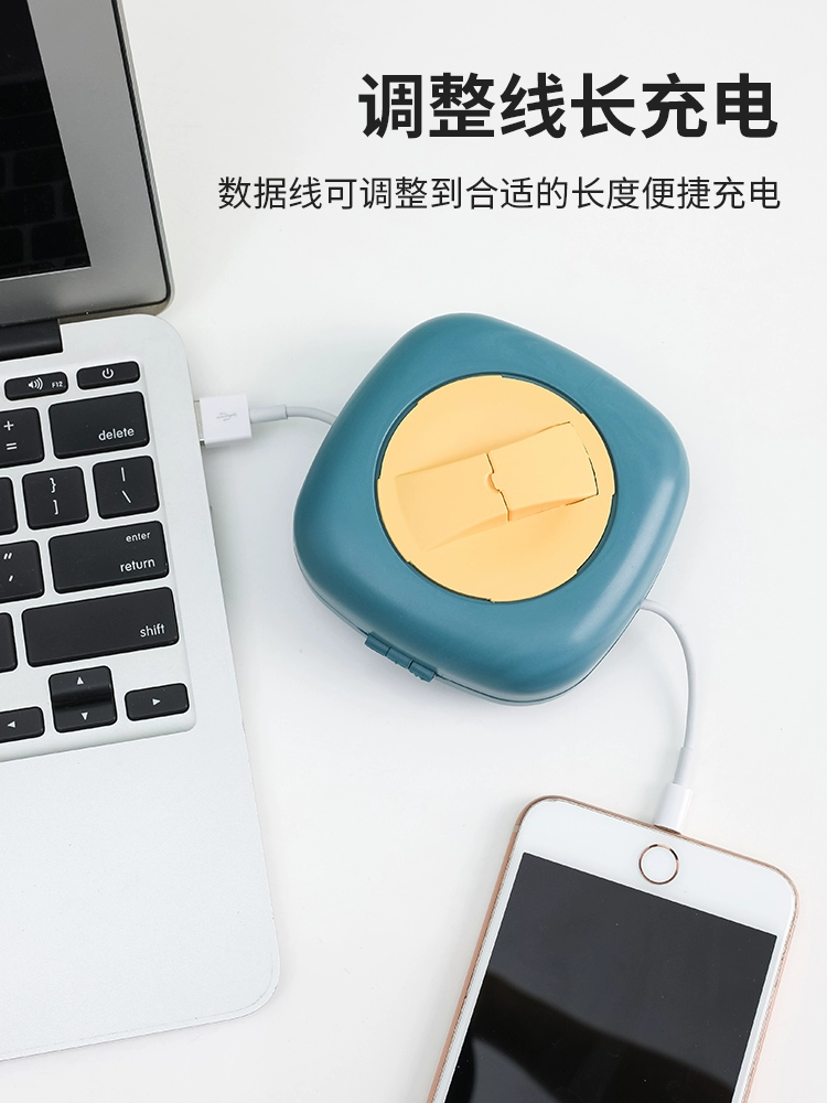 | nameOriginal | Portable data cable storage box, charging cable winder, headphone bag, cable management box, rotatable mobile phone holder |