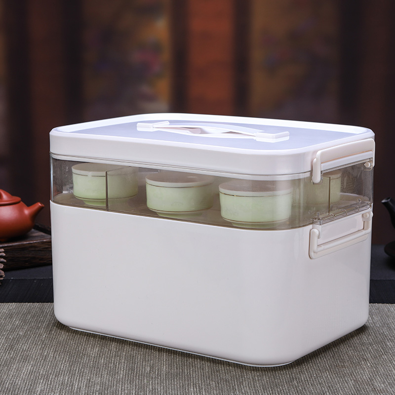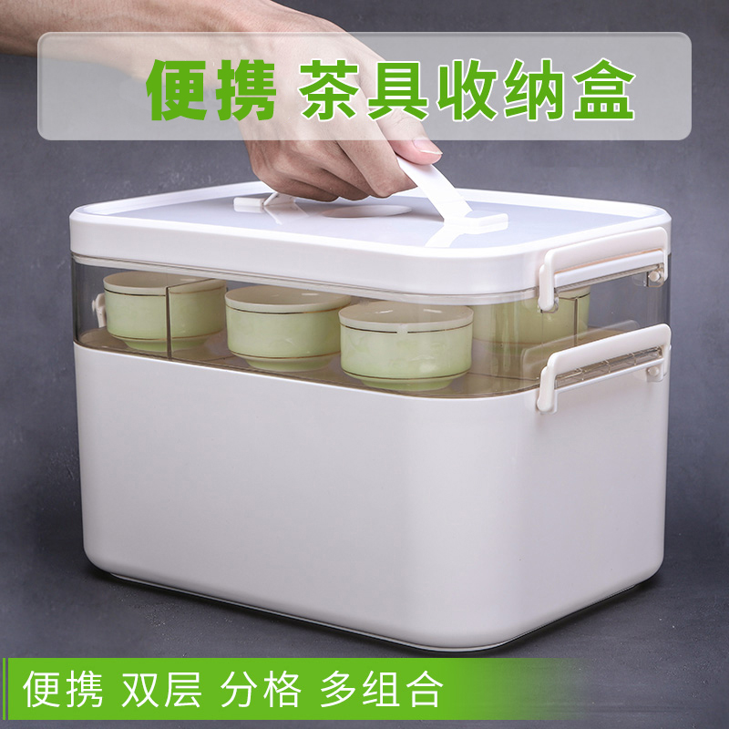 | nameOriginal | Portable Double-Layer Compartment Tea Set Cup Pot Storage Box Plastic PP Portable Car Outdoor Stackable Tea Table Storage Box |