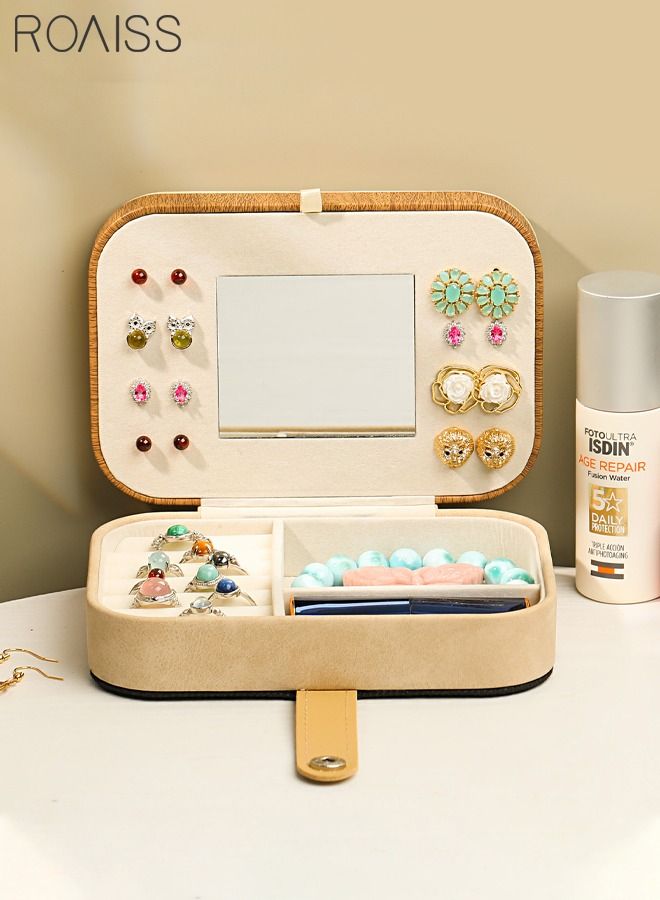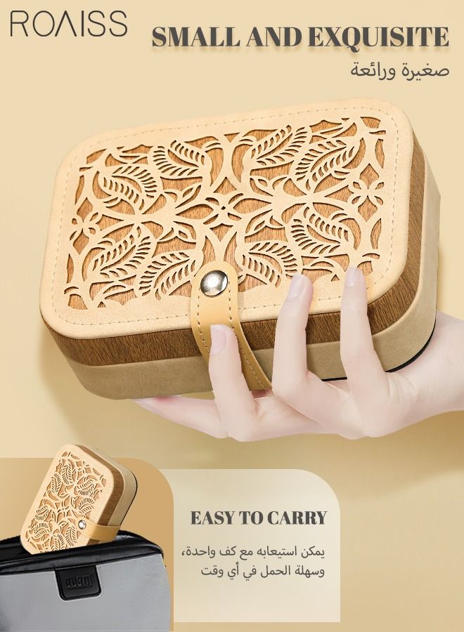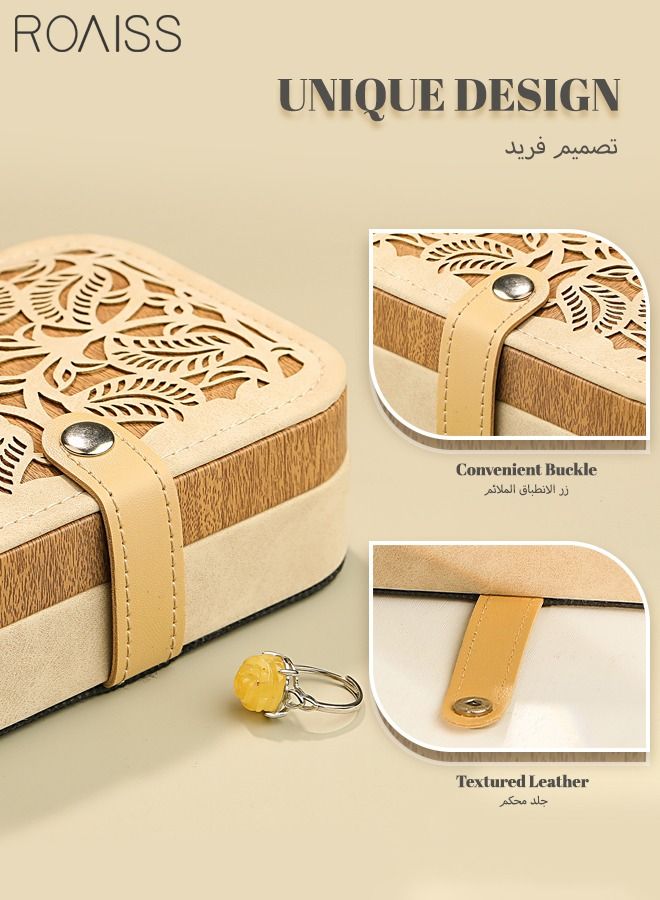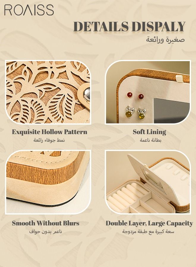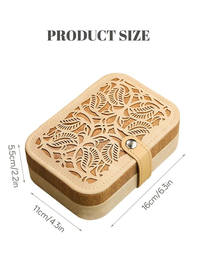 | nameOriginal | Hollow Carved Jewelry Storage Box Portable Small Lightweight Double Layer Multiple Compartments Desktop Rectangle Jewellery Box for Women Travel Brown/Beige |