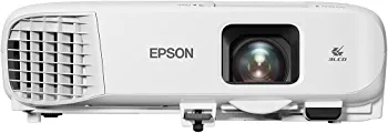 Portable Epson projector with 3400 lumens for both white and color, XGA resolution (1024 x 768), and 4:3 aspect ratio in white color.
