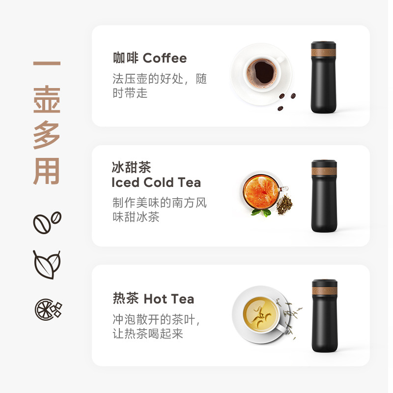 Portable French pressure Pot Mini small size sports coffee pot vacuum cup outdoor travel hand coffee teapot