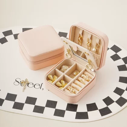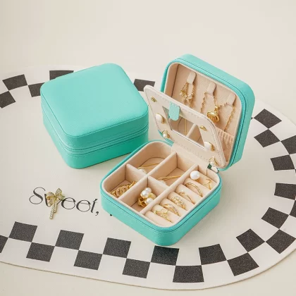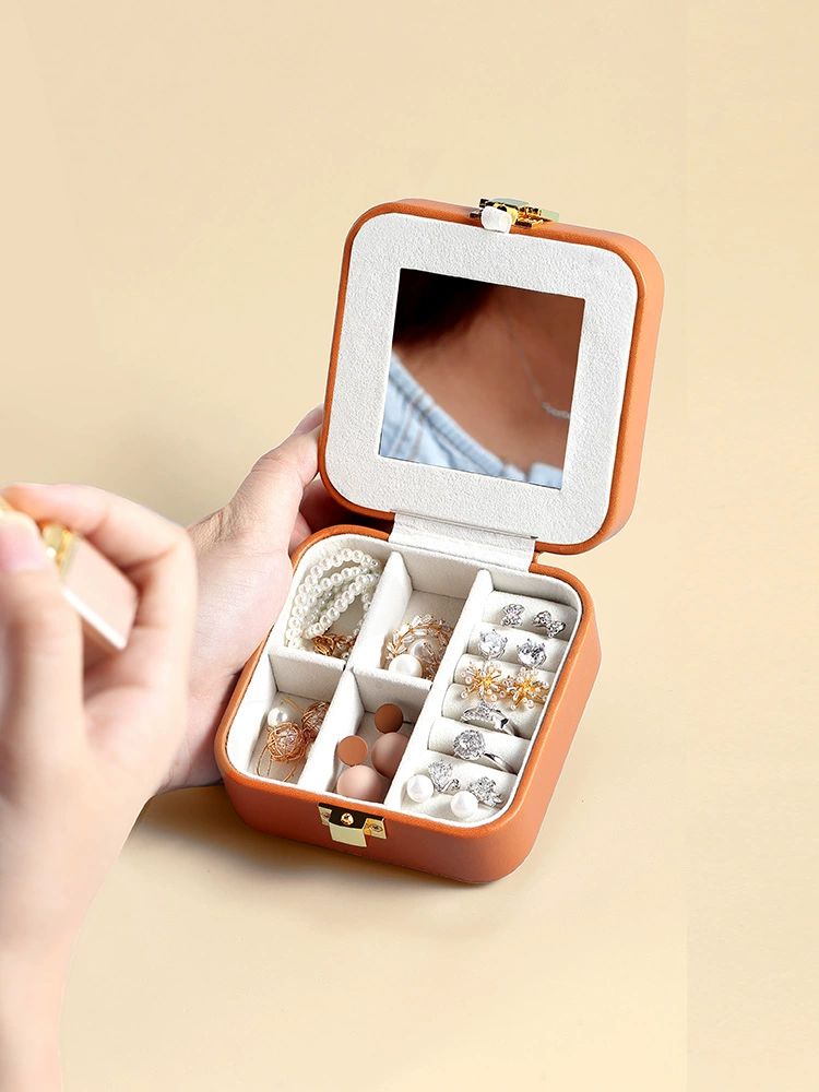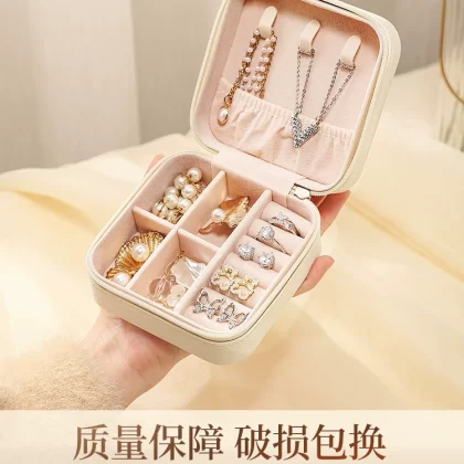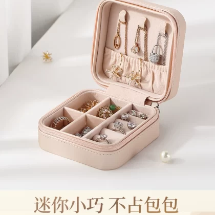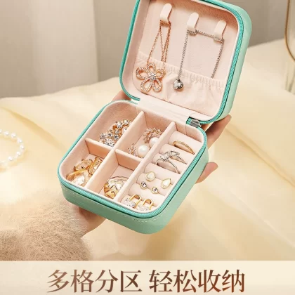 Portable jewelry box, small exquisite earrings, necklace and ring box, Internet celebrity ins wind-proof and oxidation-proof hand jewelry storage box