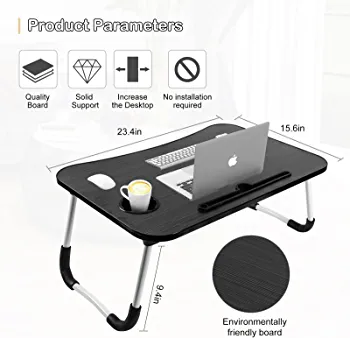 This multi-functional lap desk is perfect for use in your office, home, or home office as a workstation. It is easy to store and place, with folding table legs that allow you to save more space. The product dimensions are L×W×H:23.4×15.6×9.4 inches and it comes in black.