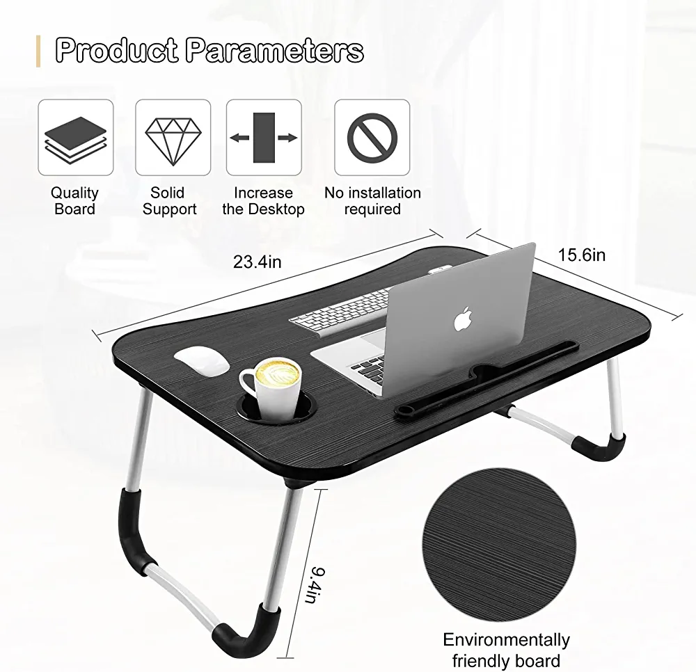 Introducing our versatile folding table that can be used for work, study, watching movies, and even eating. It comes with a laptop stand, phone and tablet holder, and can be used comfortably on the floor, sofa, or bed. The table is made of high-quality material that is waterproof and easy to clean, with a smooth surface that is resistant to damage.