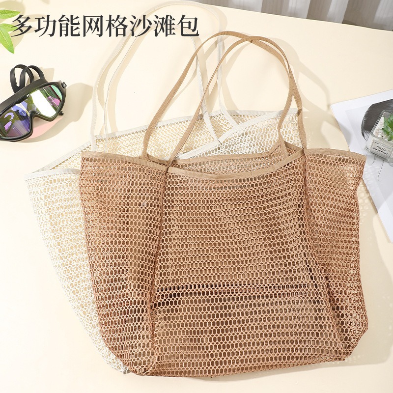 Portable Large Capacity Beach Bag Cross-border Explosive Portable Travel Storage Bag with Sandwich Mesh Crossover Bag