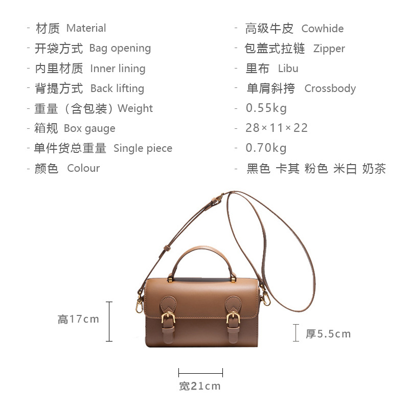 | nameOriginal | Portable leather small bag 2024 New cowhide shoulder messenger bag niche design college style Messenger Cambridge bag |