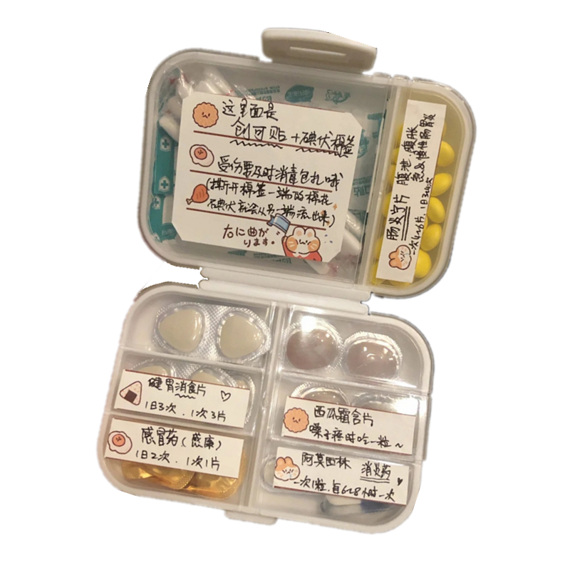 Portable love small pill box, pill dispensing box, cute mini medicine storage box, Internet celebrity portable medicine box