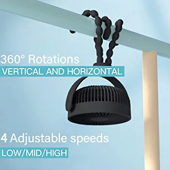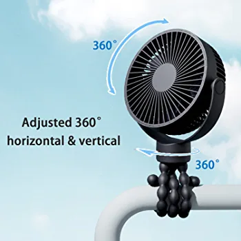 The fan can be adjusted 360° in horizontal and vertical directions, allowing you to aim the airflow as your need, without bothering to moving the fan all the time.