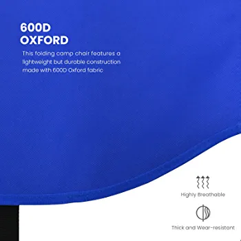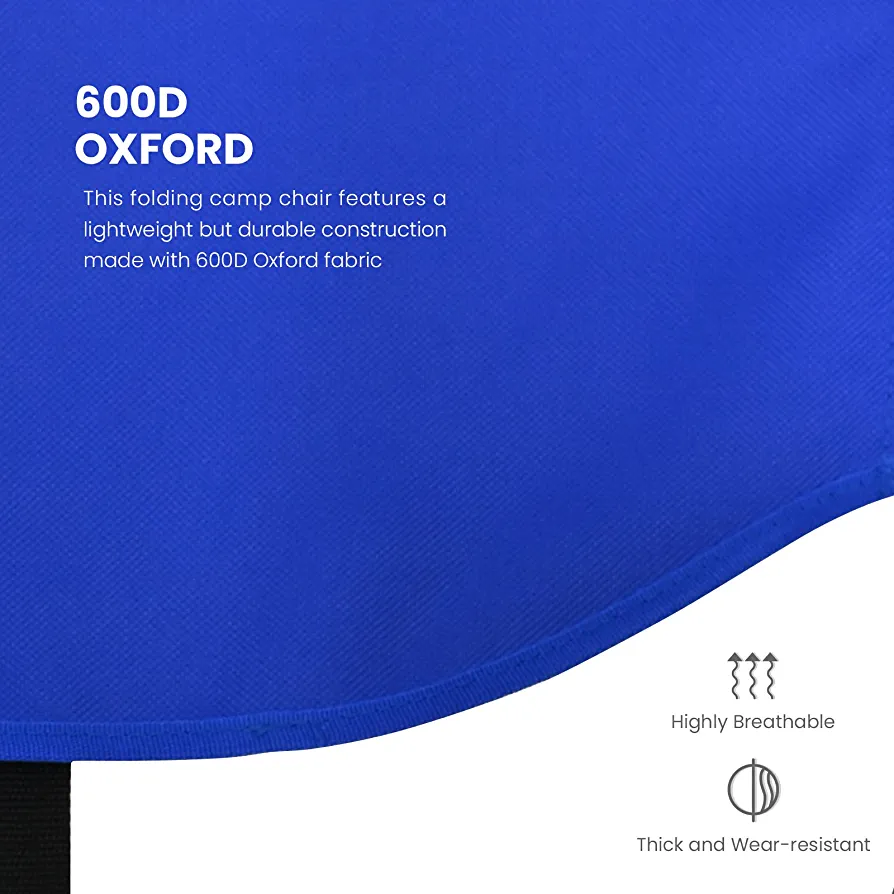 Sturdy Construction: This folding camp chair is made with 600D Oxford fabric and 1-inch thick alloy steel pipes, making it lightweight yet durable. It can withstand up to 300lbs without breaking or getting damaged.