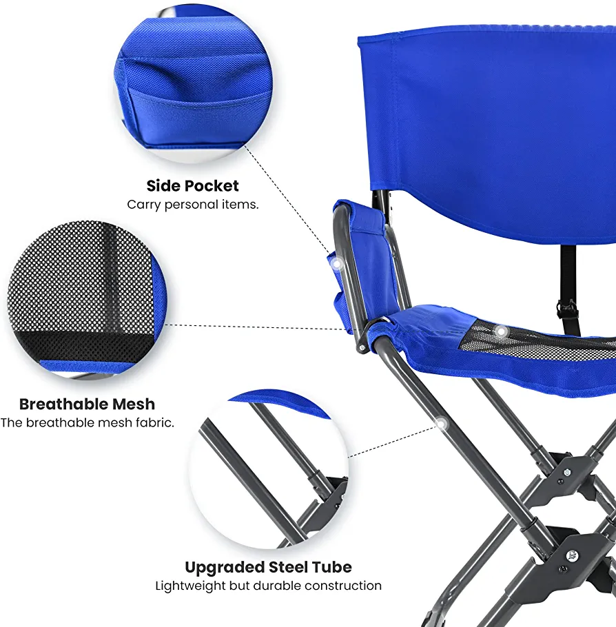 Innovative Folding Design: Our folding camping chair has an innovative design that allows you to easily fold it into a more compact structure, reducing its size to only 1/16th of its total size. The chair is lightweight, portable, and has a special handle for easy carrying.