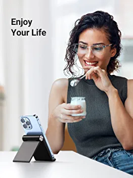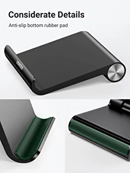 UGREEN mobile phone stand secures your phone in place and releases your hands to do other things. The adjustable phone holder lifts your iPhone to eye level and makes it easy to see the screen without bending the neck, thus releasing your neck and back pain.