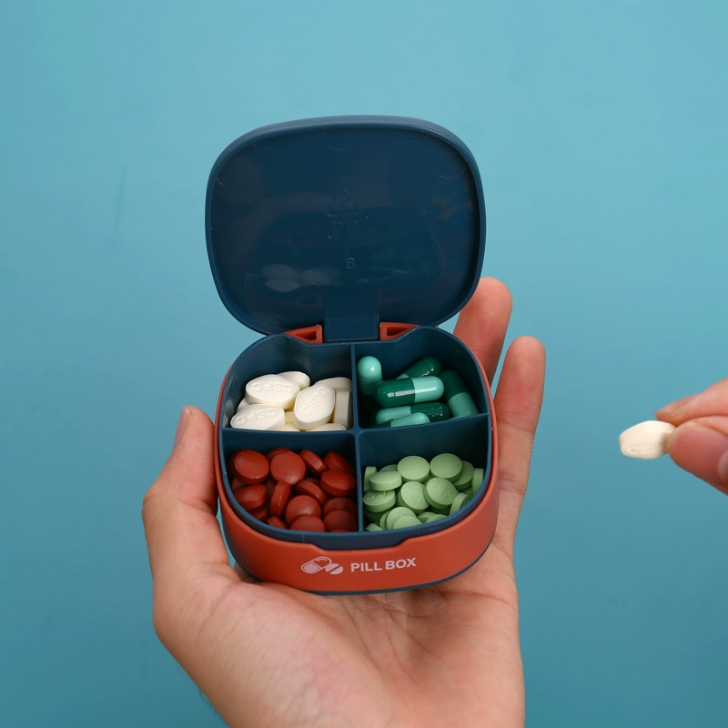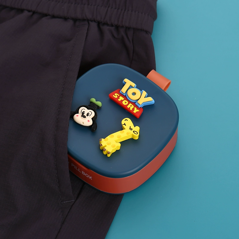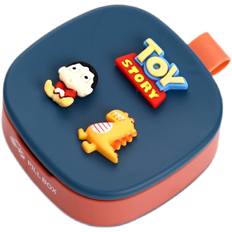 Portable small pill box Cartoon small mini sealed four-compartment 7-day packaging large-capacity portable pill storage box