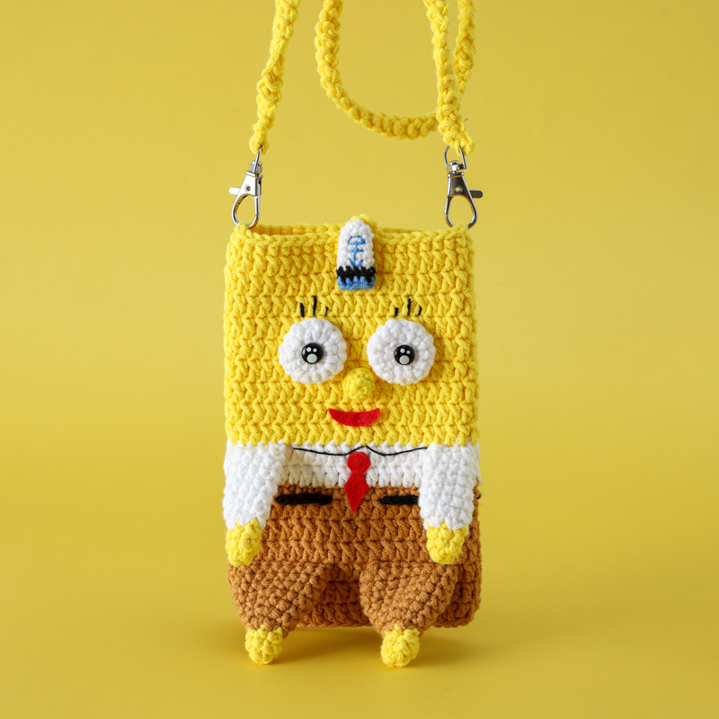 | nameOriginal | Portable sponge bag small yellow bag Big Star bag Xuefei thread crocheted cartoon brother mobile phone bag wool mobile battery bag |