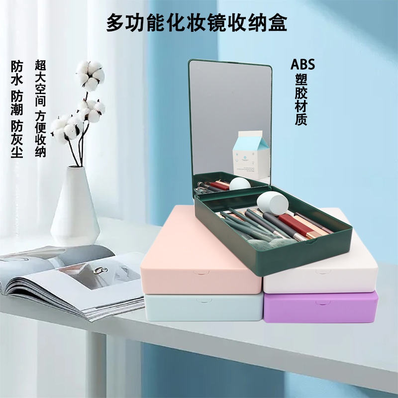 Portable Storage Box Makeup Mirror Dressing Box Folding Multifunctional Large Capacity Desktop Jewelry Box Travel Display Box