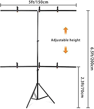 | nameOriginal | Padom T-Shape Portable Background Backdrop Support Stand Kit 5ft (150cm) Wide 7ft(200cm) Tall Adjustable Photo Backdrop Stand with 4 Spring Clamps  |