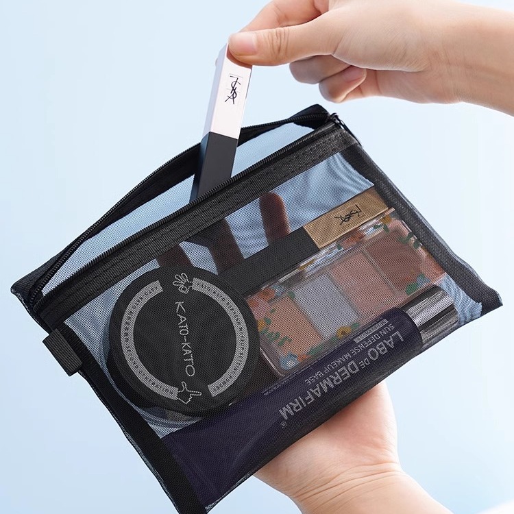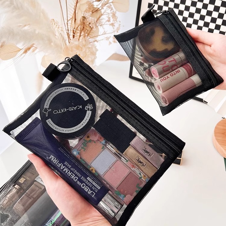 | nameOriginal | Portable Travel Cosmetic Bag Air Cushion Lipstick Storage Eyebrow Pen Bag Brush Large Capacity Mesh Bag Cosmetic Brush Storage Bag  |