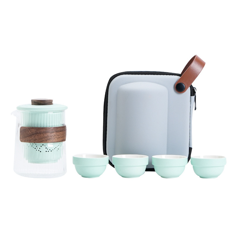 Portable Travel Tea Cup Tea Set Small Set Glass Outdoor One Pot Three Cups Ceramic Express Cup Teapot Gift