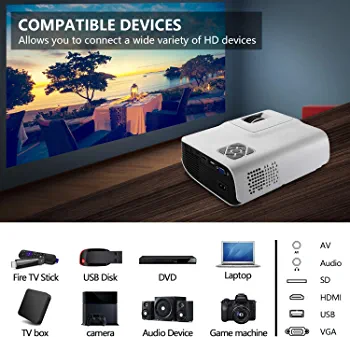 This LED HD projector is compatible with a range of devices including Fire TV Stick, PS4, HDMI, VGA, AV, and USB, giving you plenty of options to connect your favorite devices. With a lamp life of 50,000 hours, you can enjoy your favorite movies and TV shows for years to come.