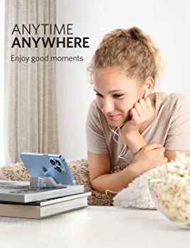 This phone holder for desk is constructed with a thicker zinc alloy, providing stability and durability. Its foldable design allows for easy opening and closing, while the full silicone coverage at the bottom ensures stability during use. With its compact size of 3.5″ x 0.5″ x 0.96″, this mini phone holder is perfect for on-the-go use. Additionally, the wider opening and 45-degree angle provide a better viewing experience, and the full silicone cover protects your phone from scratches and is compatible with phone cases.