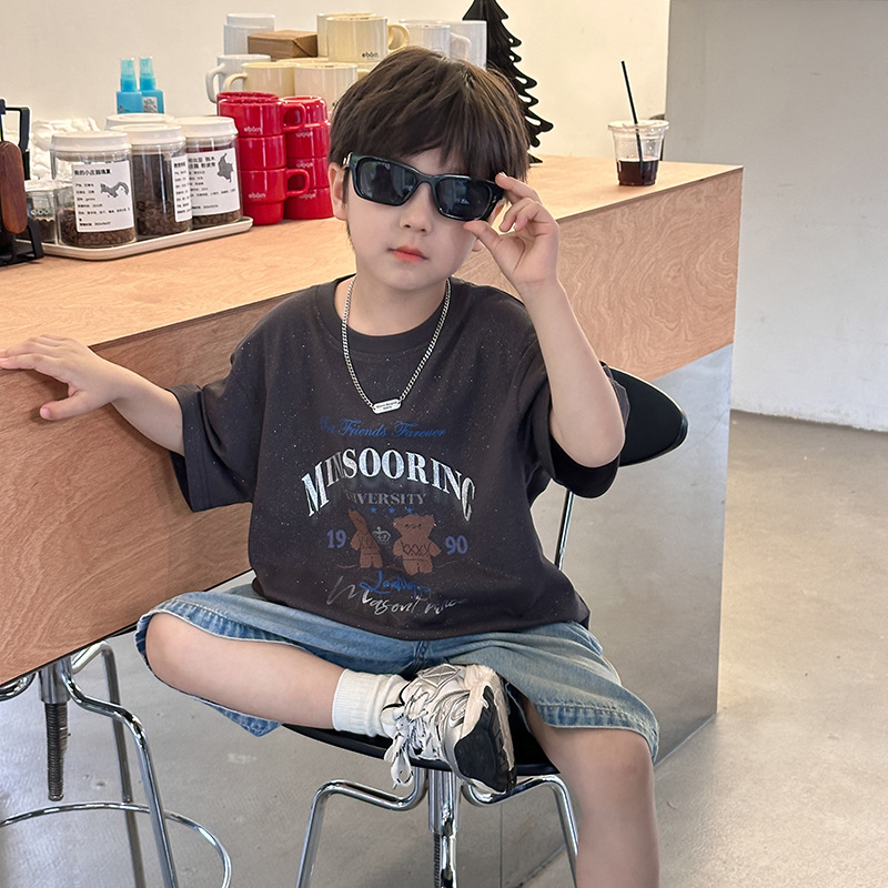 [postage 1 hour before the sale at 10: 00 on may 7] children's foreign style silver shiny cartoon short sleeve t-shirt tide