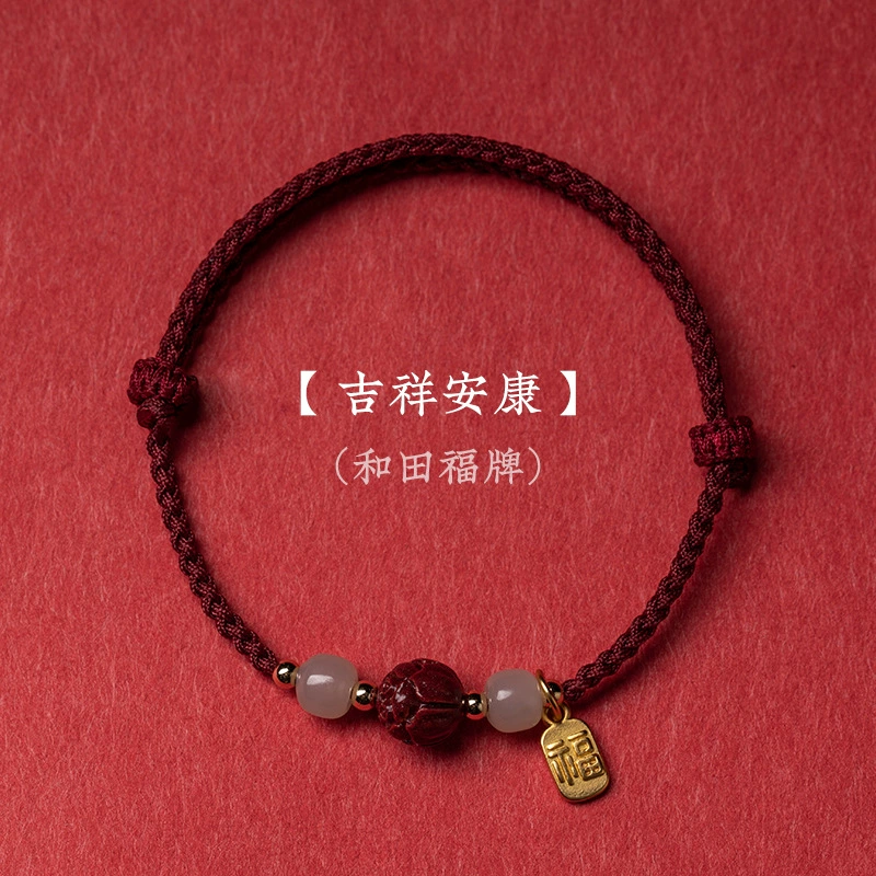 | nameOriginal | Postgraduate examination landing Lotus original mineral cinnabar natural Hetian Jade Fu brand red rope braided bestie bracelet safe female bracelet |