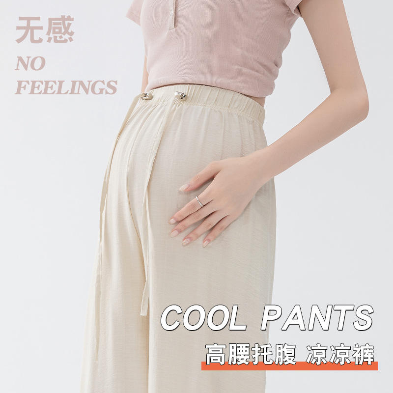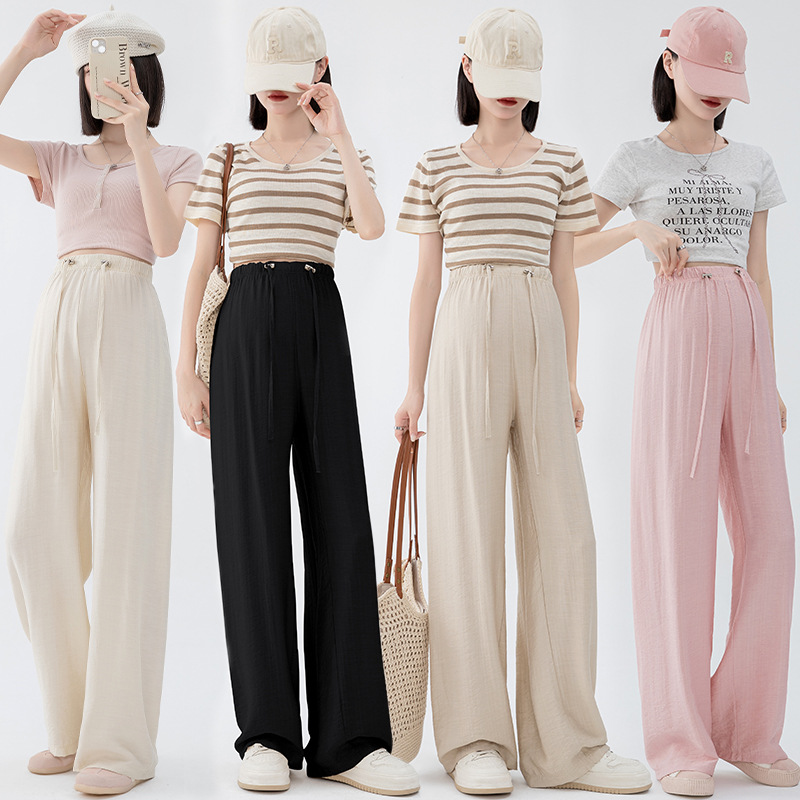 Postpartum Wearable Pregnant Women's Wide-leg Pants 2024 Summer Thin Breathable Cotton and Linen Loose Casual Abdomen-free Pregnant Women's Pants