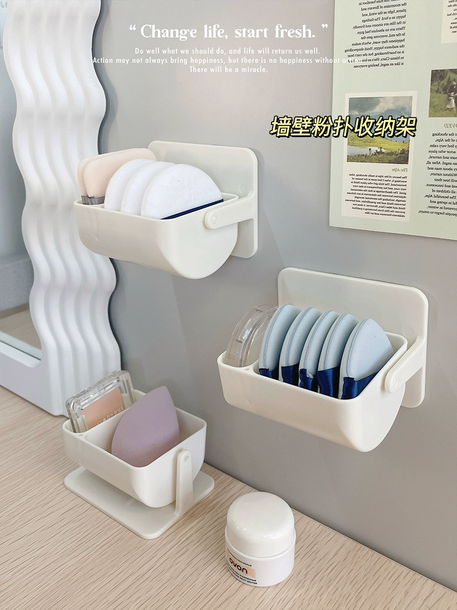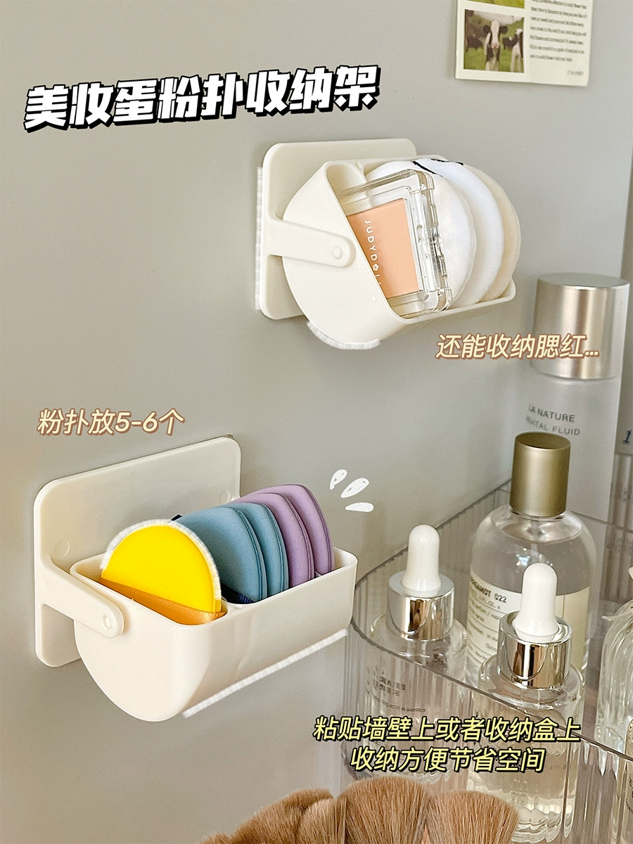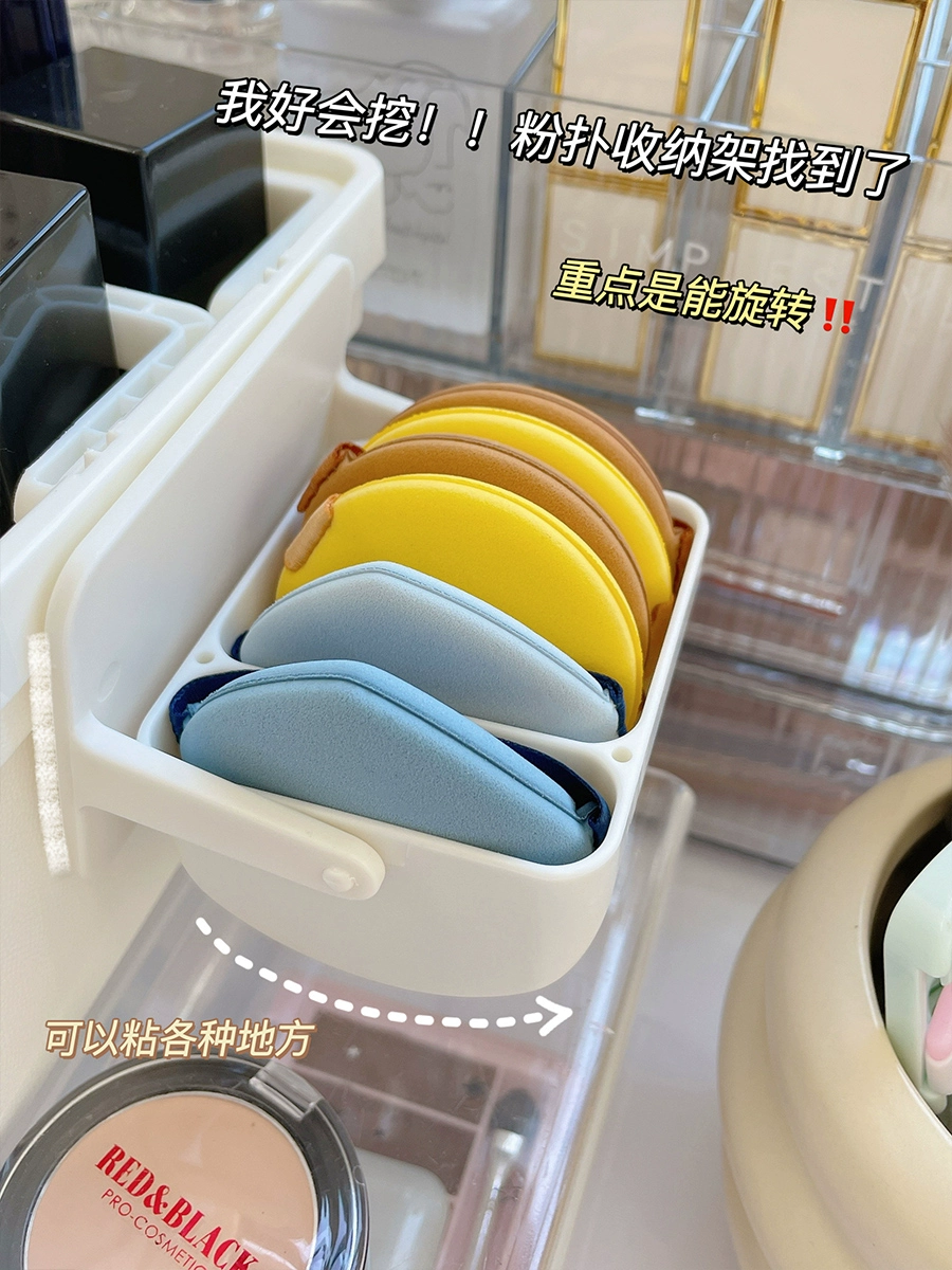 | nameOriginal | Powder puff storage box rotating wall-mounted makeup partition bracket air cushion beauty egg breathable shelf desktop storage rack |