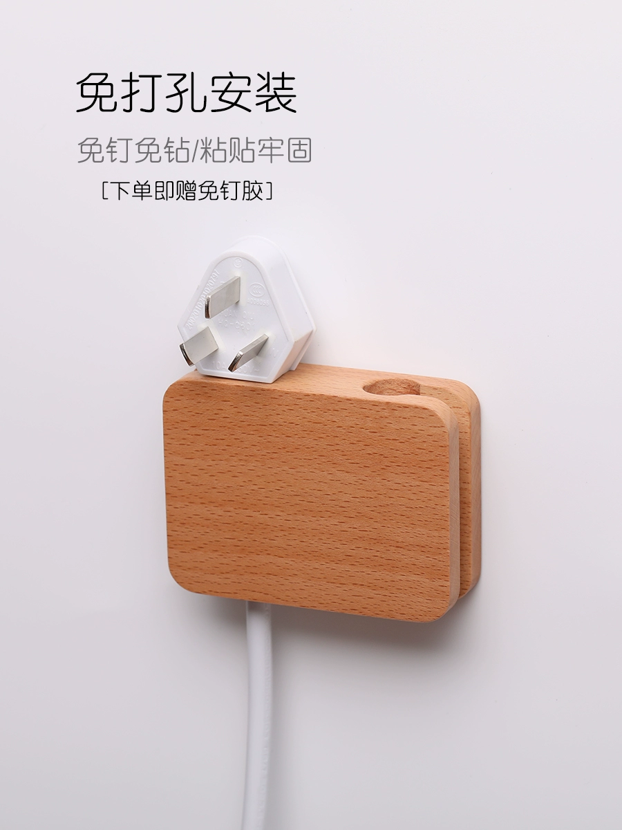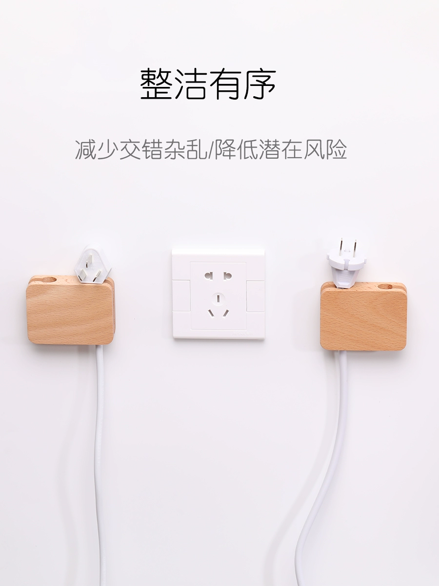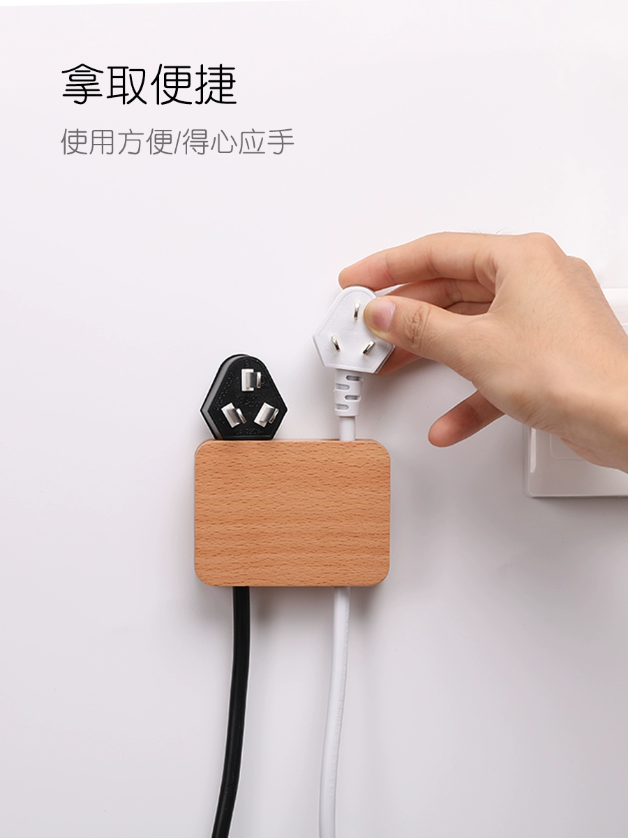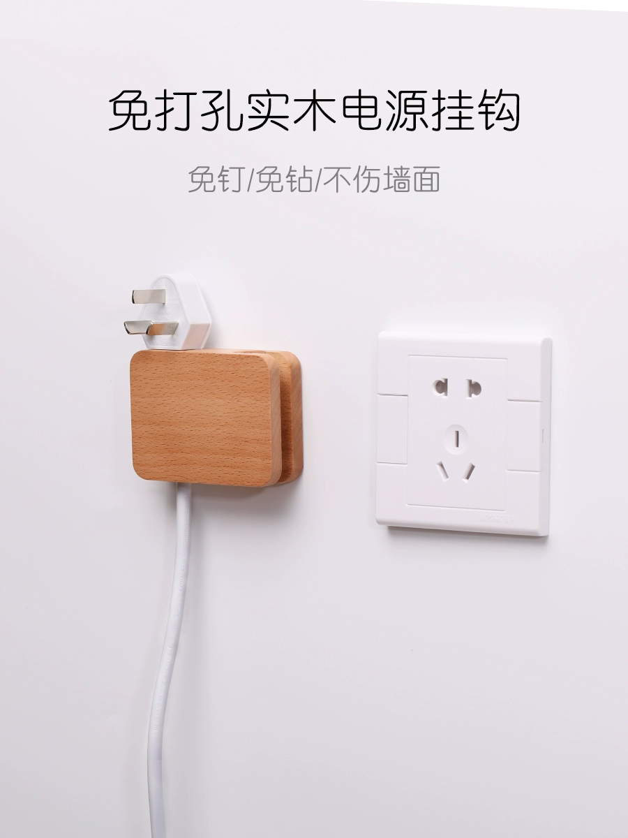 | nameOriginal | Power plug hook solid wood punch-free paste kitchen wall wall-mounted socket power cord storage and fixation artifact |