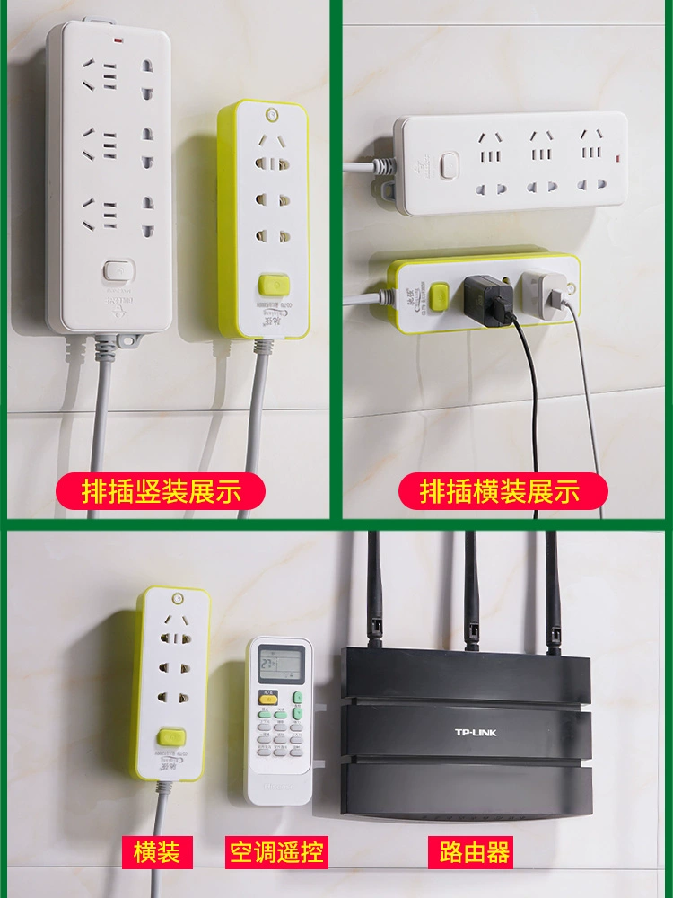 Power strip holder, punch-free power strip socket, wall-mounted, traceless hanging router, wall-mounted mother-in-law buckle