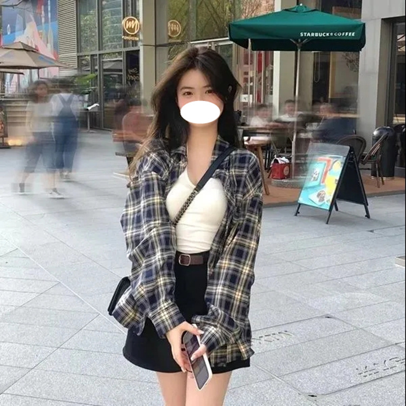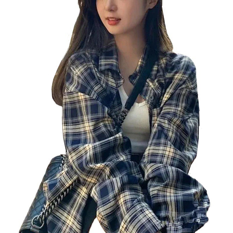 | nameOriginal | Power Style Wear Plaid Shirt Women's Summer Lazy Style Retro Loose Shirt Cardigan Coat Long Sleeve Top Spring and Autumn |