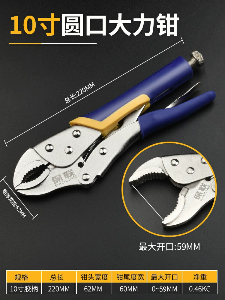 Powerful pliers, multi-purpose pliers, universal industrial-grade power pliers, fixed pressure c-type manual pipe pliers