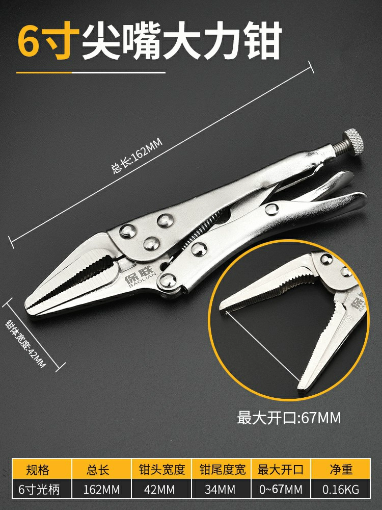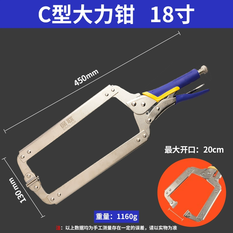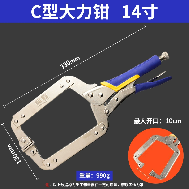 Big force pliers multifunctional pliers universal industrial grade plush force pliers fixed pressure c-type manual pipe pliers clamping pliers