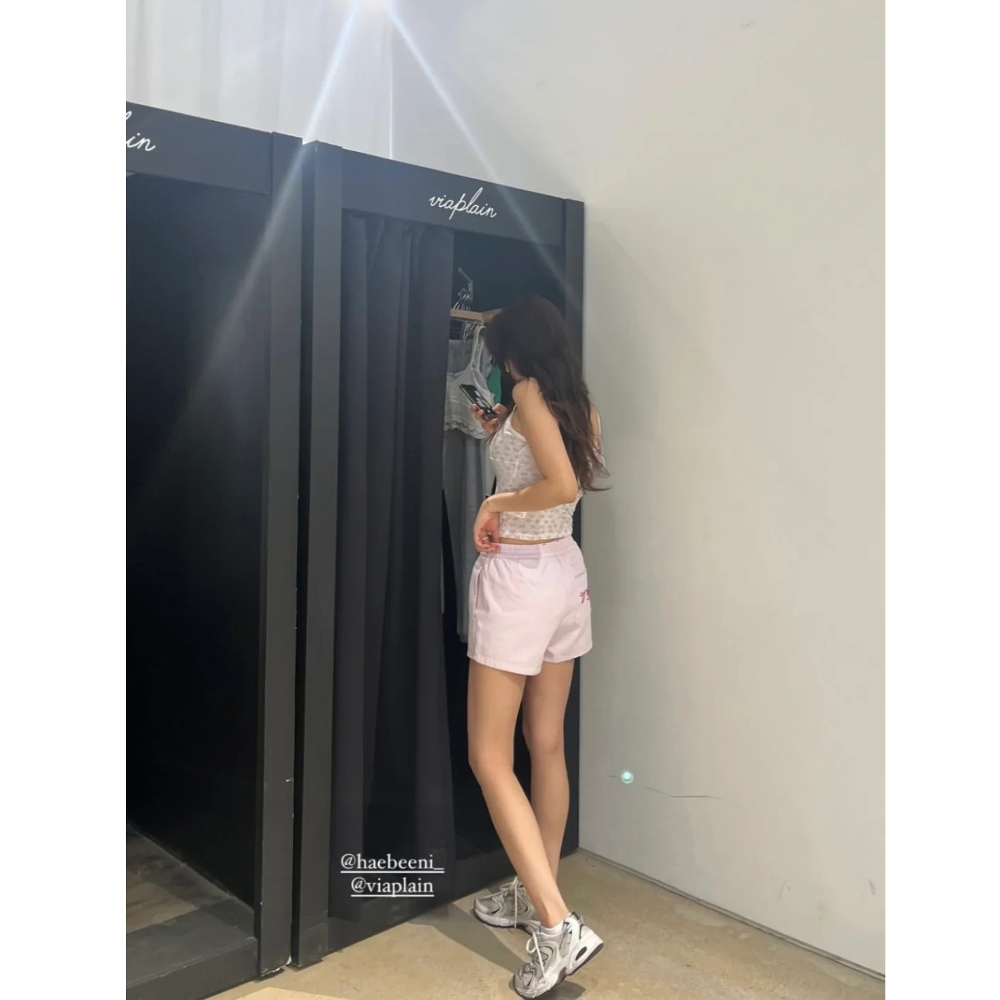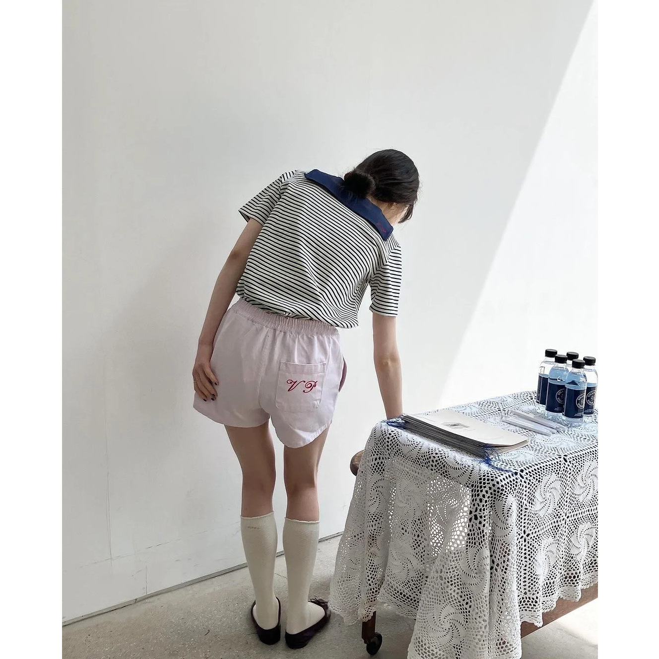 Pre -2024 summer new South Korea designer viapl * in casual elastic waist pocket embroidered solid color shorts