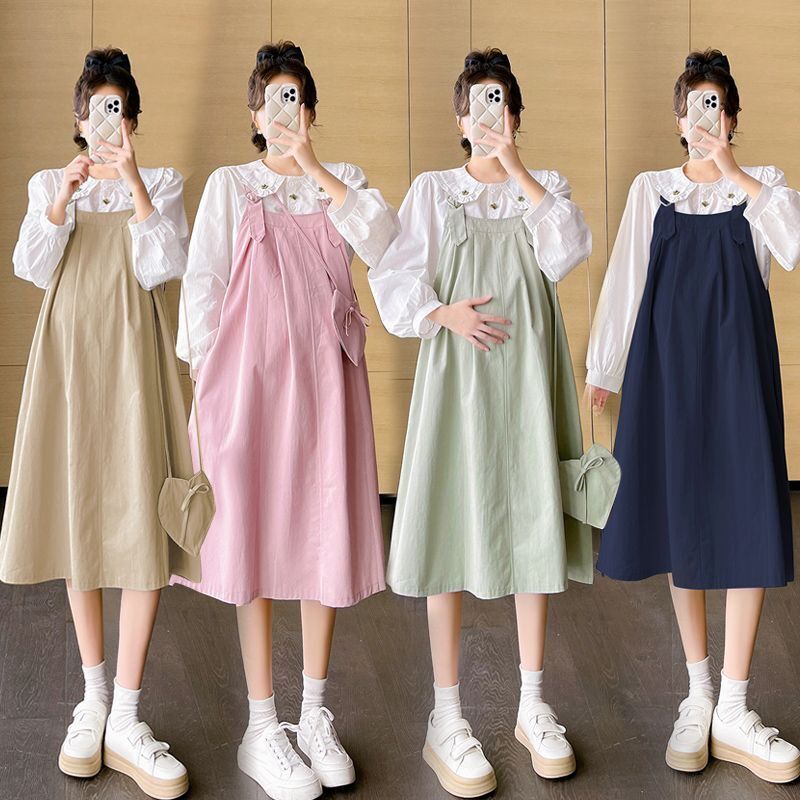 | nameOriginal | Pregnant Women Autumn Strap dress 2024 New Fashion Outer Wear Loose plus size Summer suit Two-piece Skirt |